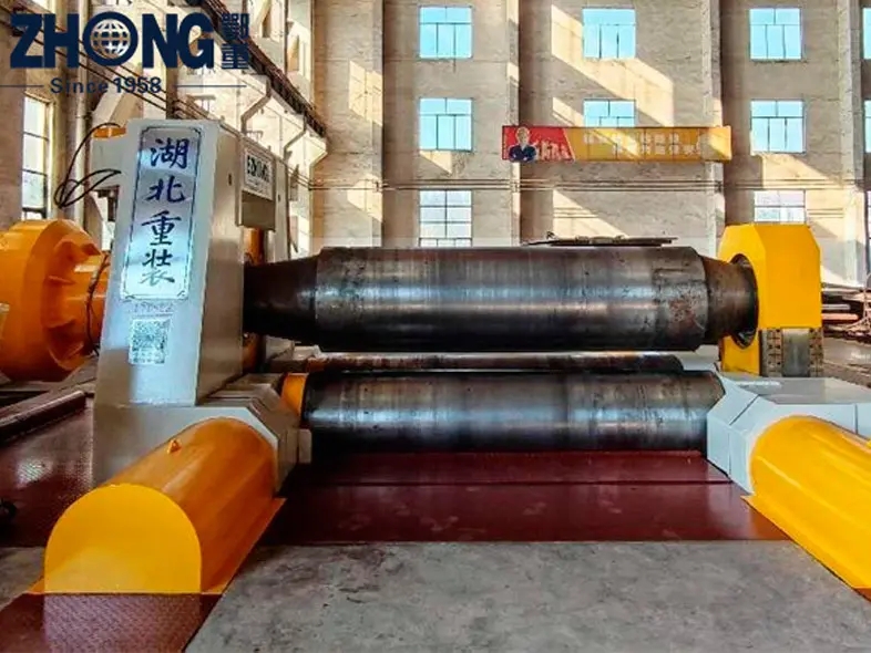 這臺機(jī)器是三輥全液壓卷板機(jī),具有可調(diào)中心距和電液控制驅(qū)動結(jié)構(gòu)。該型號性能優(yōu)異,易于操作。憑借板端預(yù)彎曲的功能,它可以一次喂入金屬板,并完成板端的預(yù)彎曲和工件的滾動,而無需轉(zhuǎn)身。