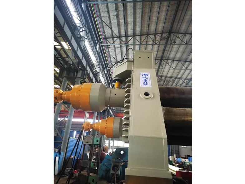 5. 四輥卷板機預(yù)彎曲:將前后輥調(diào)整到工作所需的相應(yīng)位置,并啟動上輥進(jìn)行成型和彎曲。