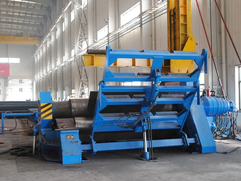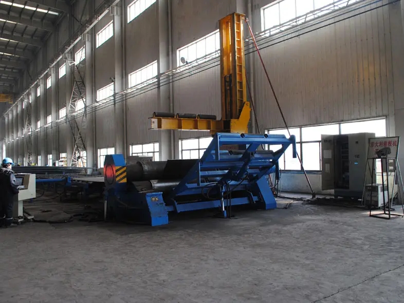 5. 四輥卷板機預彎曲:將前后輥調(diào)整到工作所需的相應位置,并啟動上輥進行成型和彎曲。